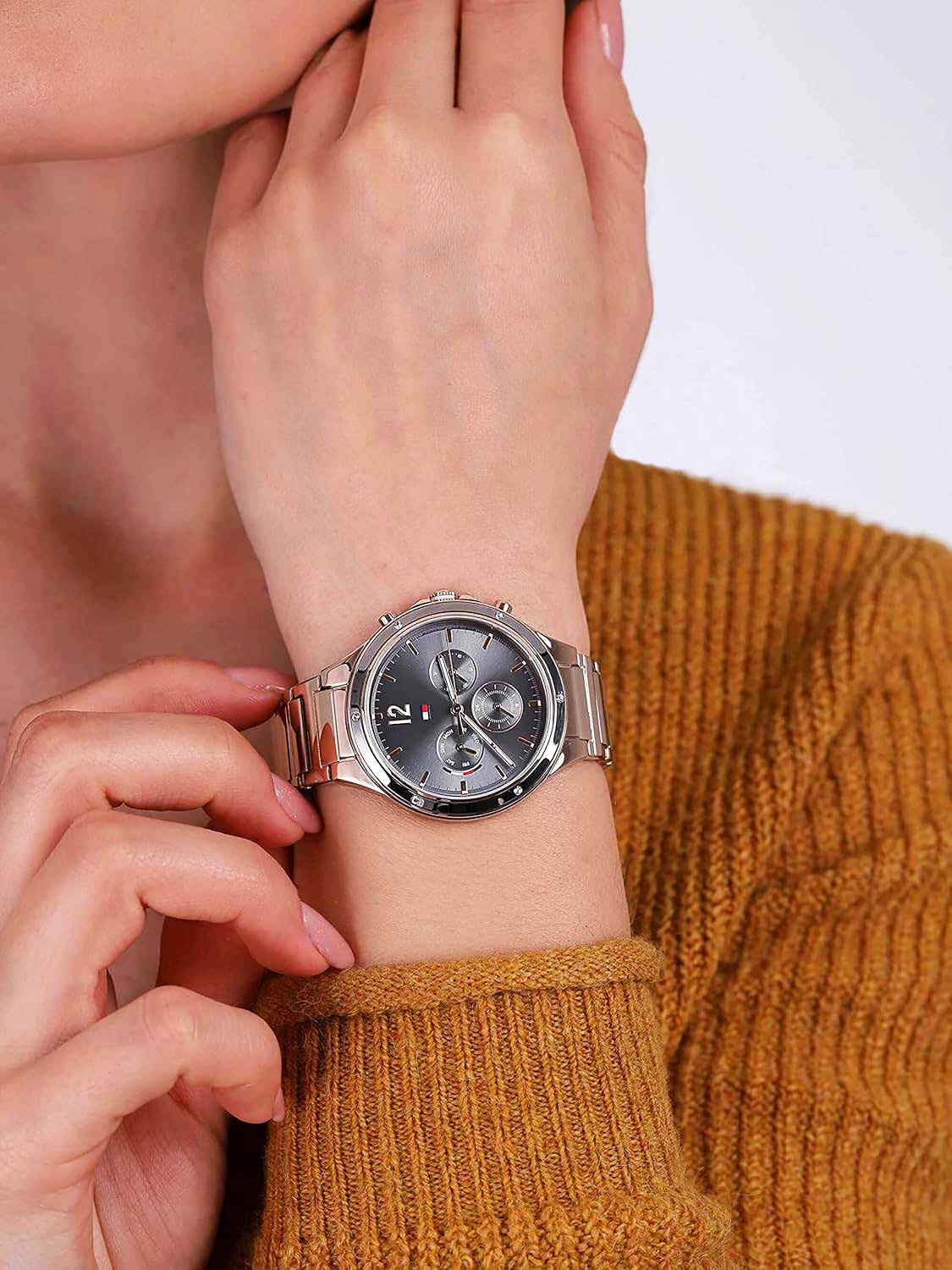 Современные функциональные часы несомненно станут настоящим украшением вашего модного образа. Eve. 12-ти и 24-х часовой формат времени. Циферблат выполнен по технологии Sunray (солнечные лучи). Метки в виде штрихов. Время в 24-х часовом формате, дата и день недели вынесены на отдельные циферблаты. Рифленая заводная головка с защитой. Круглый корпус. Браслет с раскладывающейся застежкой. Кнопки около заводной головки неподвижны и выполняют декоративную функцию.