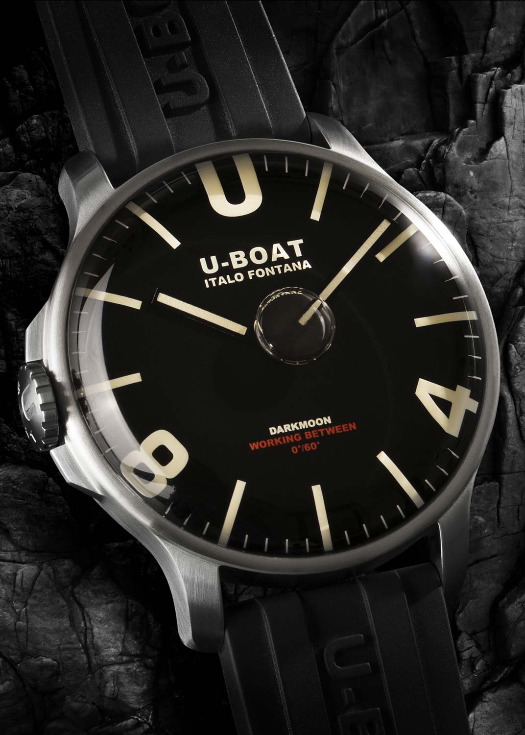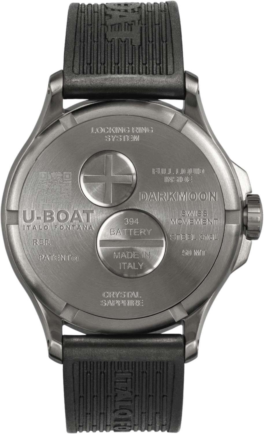 Циферблат с метками в виде штрихов, арабских цифр 4, 8 и английской буквы U на отметке 12 часов. Стрелки и метки с люминесцентным покрытием SuperLuminova, которое светится в темноте после непродолжительной зарядки на свету. Рифленая завинчивающаяся заводная головка с защитой расположена слева, что обеспечивает комфортное ношение на правой руке. Уникальная система блокировки задней крышки с быстрой заменой батарейки. Ремешок из сверхпрочной вулканизированной резины с классической застежкой.