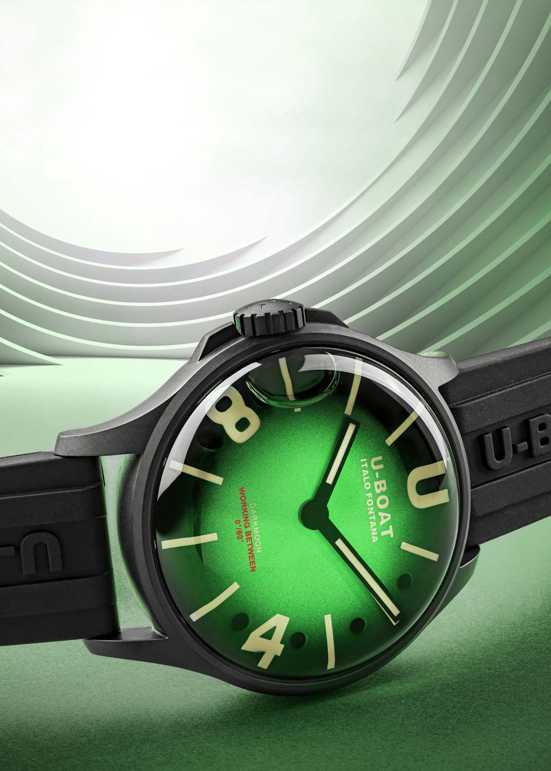 Циферблат выполнен по технологии Sunray (солнечные лучи) с метками в виде штрихов, арабских цифр 4, 8 и английской буквы U на отметке 12 часов. Стрелки и метки с люминесцентным покрытием SuperLuminova, которое светится в темноте после непродолжительной зарядки на свету. Рифленая завинчивающаяся заводная головка с защитой расположена слева, что обеспечивает комфортное ношение на правой руке. Уникальная система блокировки задней крышки с быстрой заменой батарейки. Ремешок из сверхпрочной вулканизированной резины с классической застежкой.
