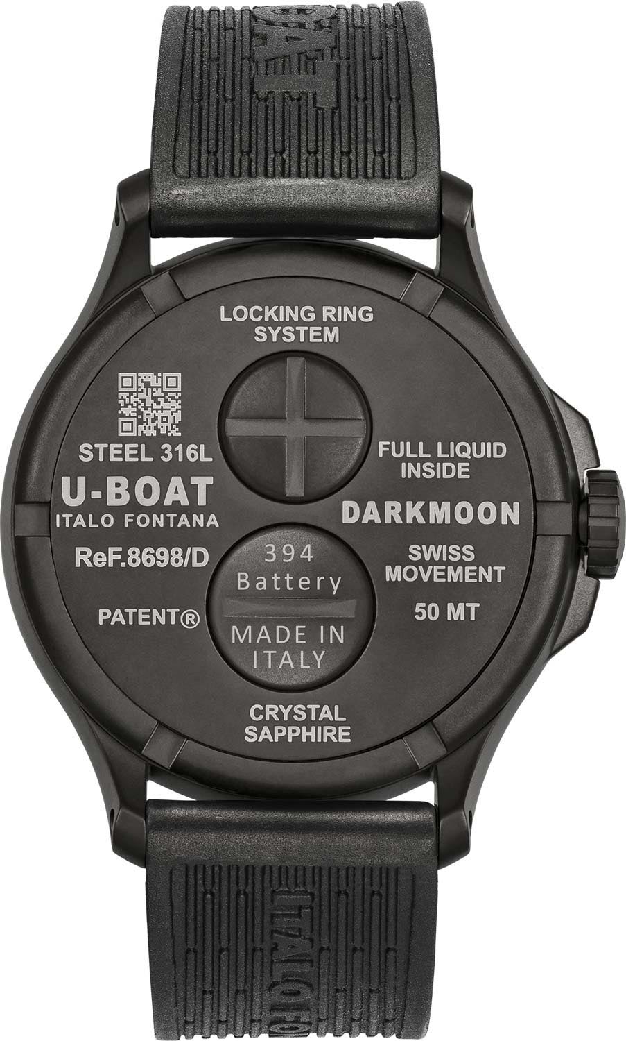 Darkmoon. Мужские наручные часы. Стальной корпус заполнен специальным маслом, создающим иллюзию отсутствия стекла. Видимый воздушный пузырек на циферблате компенсирует температурные колебания.