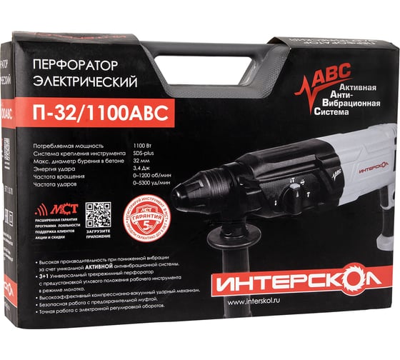 Перфоратор Интерскол П-32/1100АВС SDS plus, с Активн. анти-вибрационной сист. (кейс) 977.1.0.70
