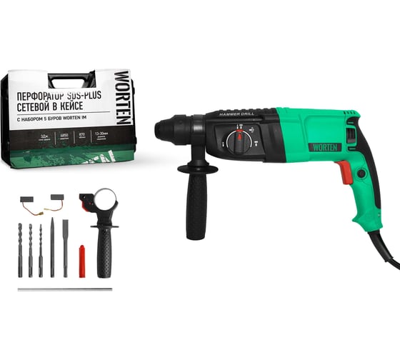 Перфоратор WORTEN SDS-plus, сетевой, 870W с набором 5 буров КА-90000340