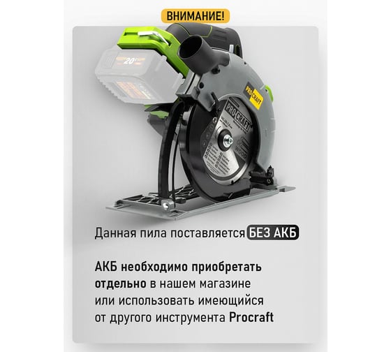 Пила дисковая аккумуляторная PROCRAFT PCA24 20В, 165 мм, пропил 67мм (Без АКБ и ЗУ) PCA24-bb