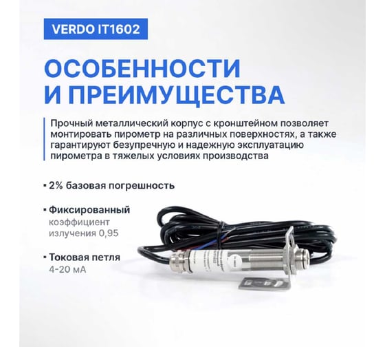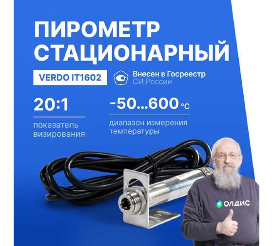 Пирометр стационарный Verdo IT1602 (-50…600С)/(±2% или ±2С); DS=20:1; k=0,95; без лазера с поверкой IT136020-СП