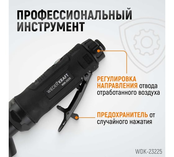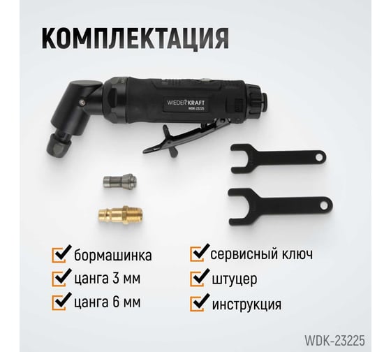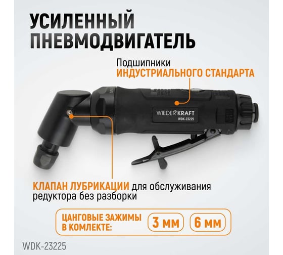 Пневматическая угловая бормашинка WIEDERKRAFT 115град., 18000 об/мин, 400 Вт WDK-23225