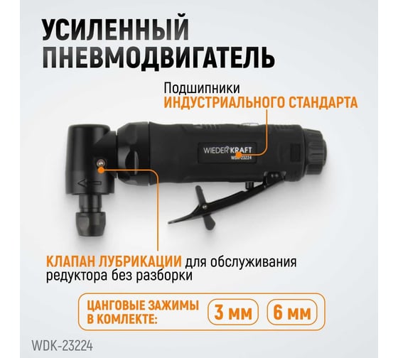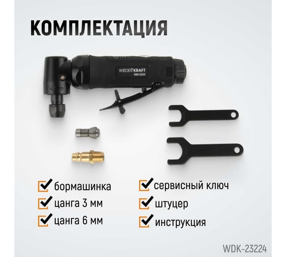 Пневматическая угловая бормашинка WIEDERKRAFT 18000 об/мин, 400 Вт WDK-23224