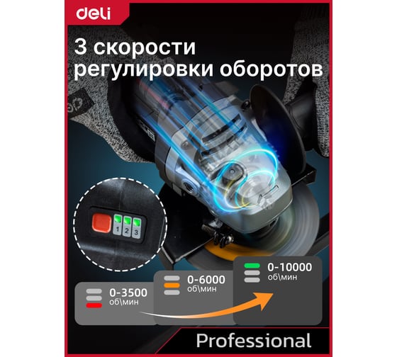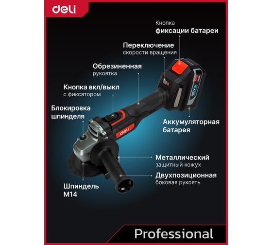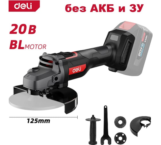 Профессиональная бесщеточная угловая шлифмашина DELI аккумуляторная DE-JM20-2 (Без АКБ и ЗУ, 125мм, 3 скорости) 164321