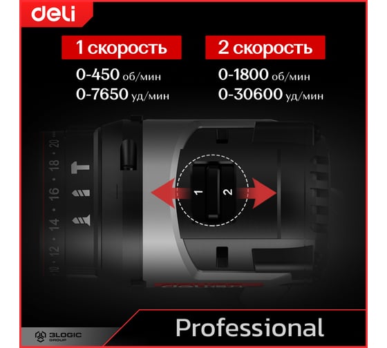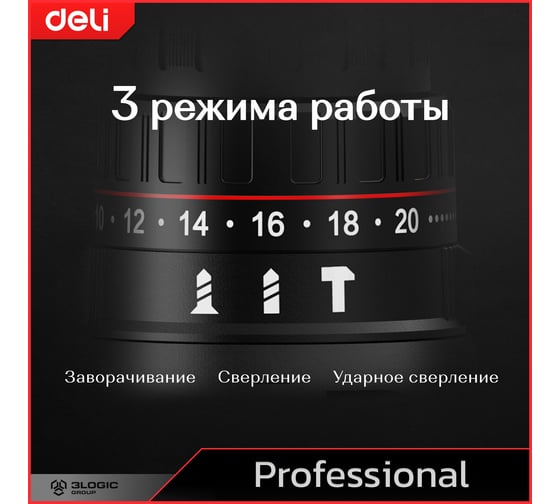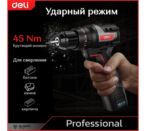 Профессиональный бесщеточный ударный шуруповерт DELI DE-CZ16-1A2 (1 АКБ, 16В х2 Ач + ЗУ, 45Нм, сумка) 168689