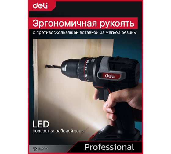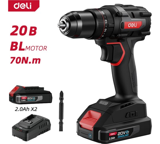 Профессиональный бесщеточный ударный шуруповерт DELI DE-CZ20-1D2 (2 АКБ, 20В х 2Ач + ЗУ, 13мм, 70Нм, сумка) 168692