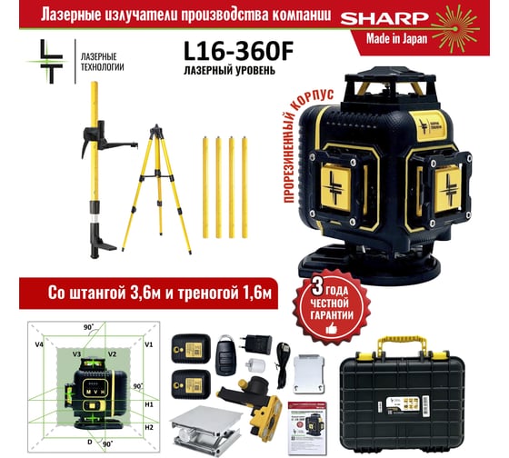 Профессиональный лазерный уровень LT L16-360F + штатив 3.6м + тренога 1.6м L16-360F/3,6м/1,6м