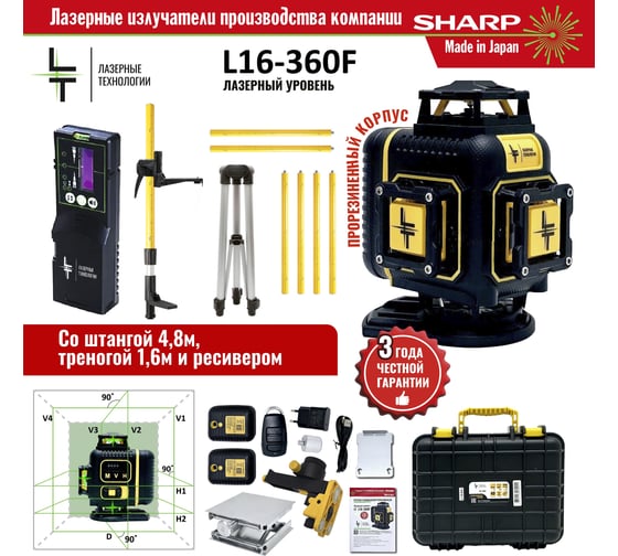 Профессиональный лазерный уровень LT L16-360F + штатив 4.8м + тренога 1.5м Усиленная + приемник (отражатель) лазерного луча L16-360F/4,8м/1,5-УС/ОТР