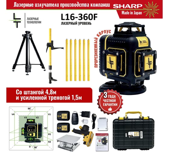 Профессиональный лазерный уровень LT L16-360F + штатив 4.8м + тренога 1.5м усиленная L16-360F/4,8м/1,5-УС