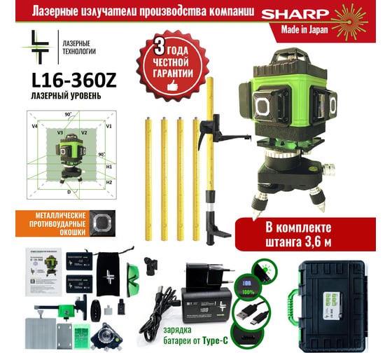 Профессиональный лазерный уровень LT L16-360Z + штанга распорная 3.6 м L16-360Z/3.6м