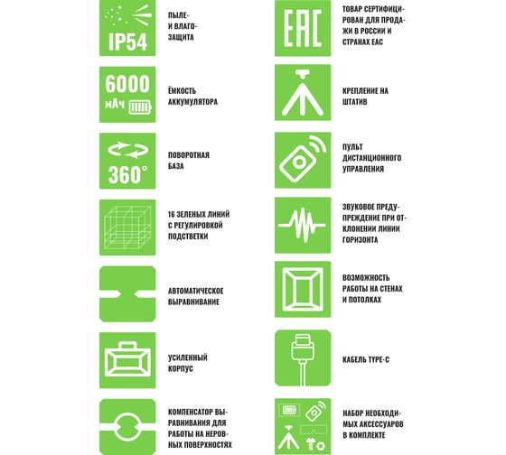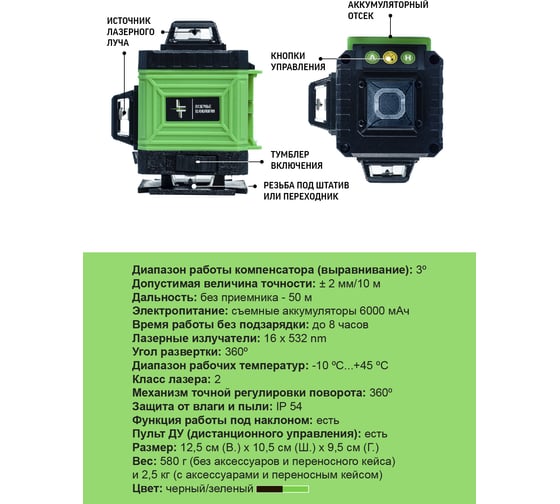 Профессиональный лазерный уровень LT L16-360Z + штатив с треногой L16-360Z/3.6м+