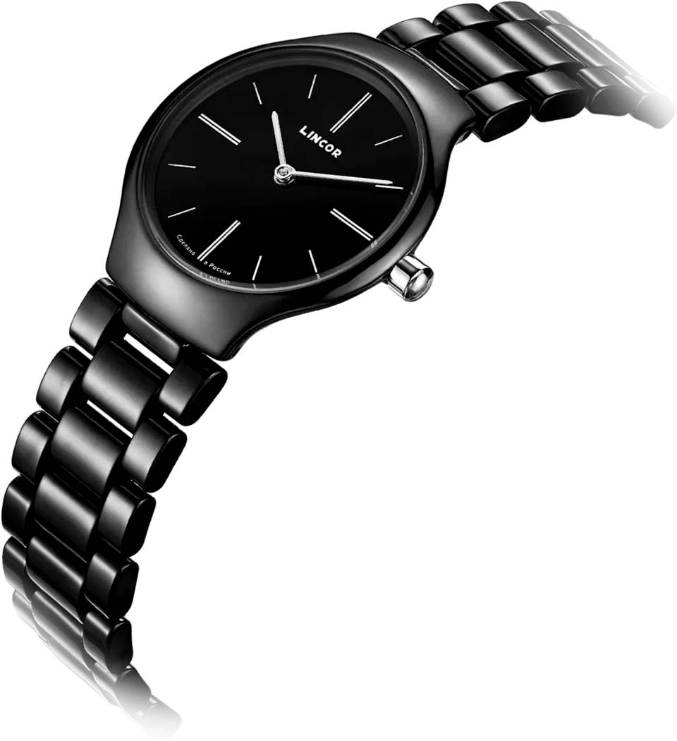 Утонченные женские часики из керамики - настоящая находка даже для самой искушенной леди. Женские кварцевые часы с надежным японским механизмом Lincor UNI. Корпус и браслет выполнены из керамики. Метки в виде штрихов. Стальная задняя крышка. Браслет с раскладывающейся застежкой. Имеется мужской вариант модели 1198C11B3.