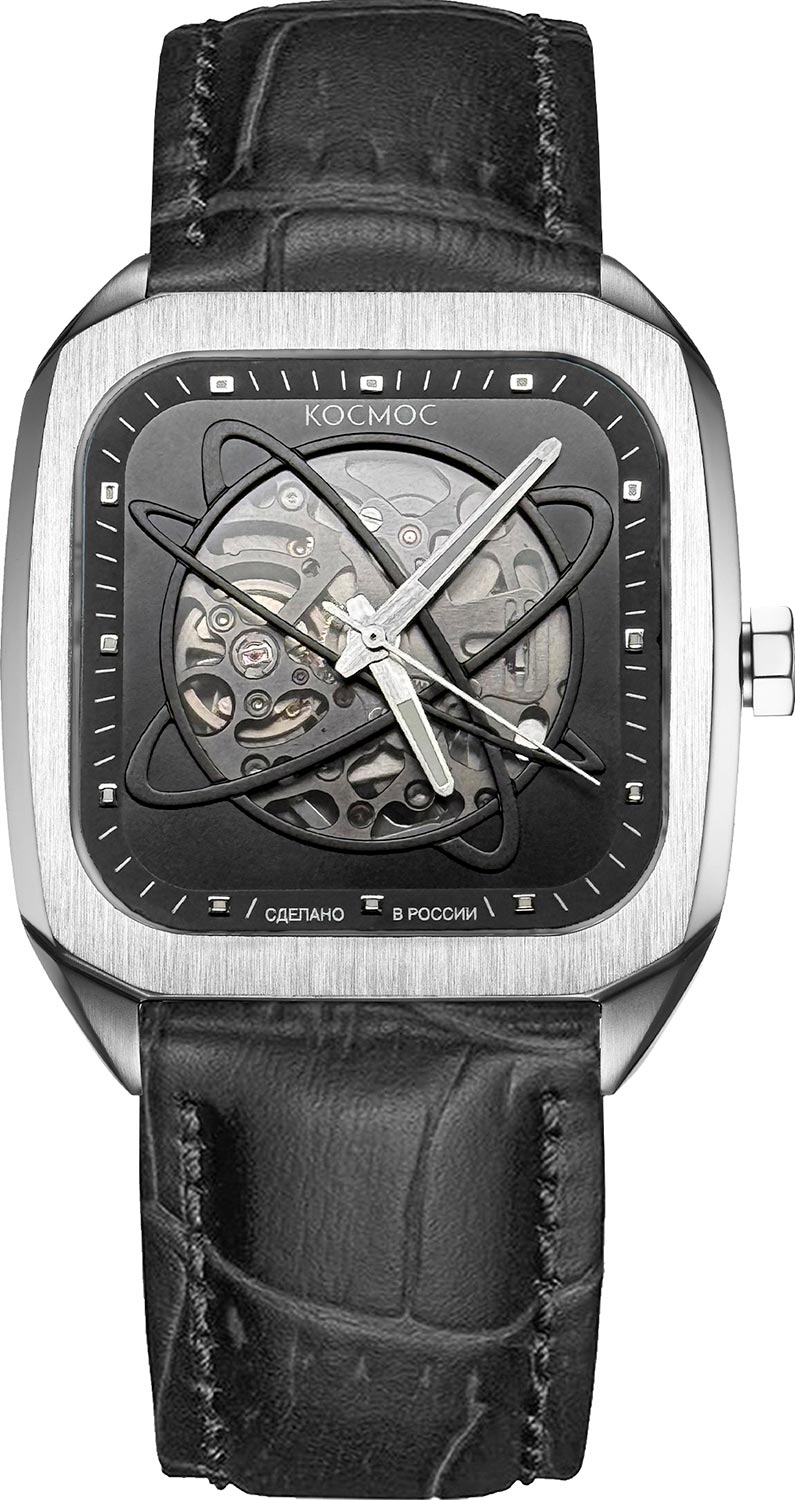 Мужские наручные российские часы. Квадратный корпус из нержавеющей стали с зеркальной полировкой и сатинированием. Циферблат выполнен по технологии Sunray (солнечные лучи) и имеет апертуру круглой формы, сквозь которую можно разглядеть детали механизма. Она декорирована линиями, напоминающими орбиты, траектории, по которым движутся небесные тела.