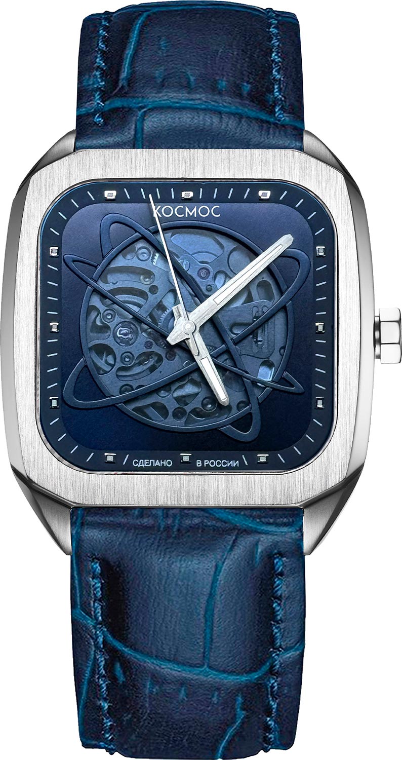 Мужские наручные российские часы. Квадратный корпус из нержавеющей стали с зеркальной полировкой и сатинированием. Циферблат выполнен по технологии Sunray (солнечные лучи) и имеет апертуру круглой формы, сквозь которую можно разглядеть детали механизма. Она декорирована линиями, напоминающими орбиты, траектории, по которым движутся небесные тела.