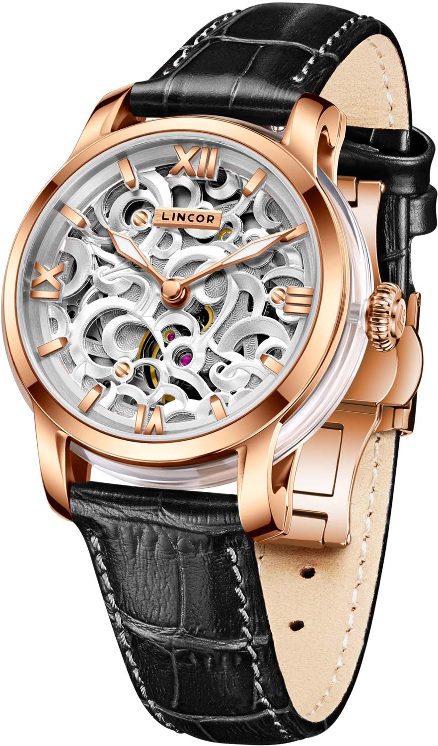 Лимитированная серия – 300 экземпляров. Скелетонизированные женские наручные часы. В механизме 24 камня,частота 28800 полуколебаний в час. Запас хода до 42 часов. Возможность ручного завода. Функция stop-second. Ротор механизма украшен гравировкой.