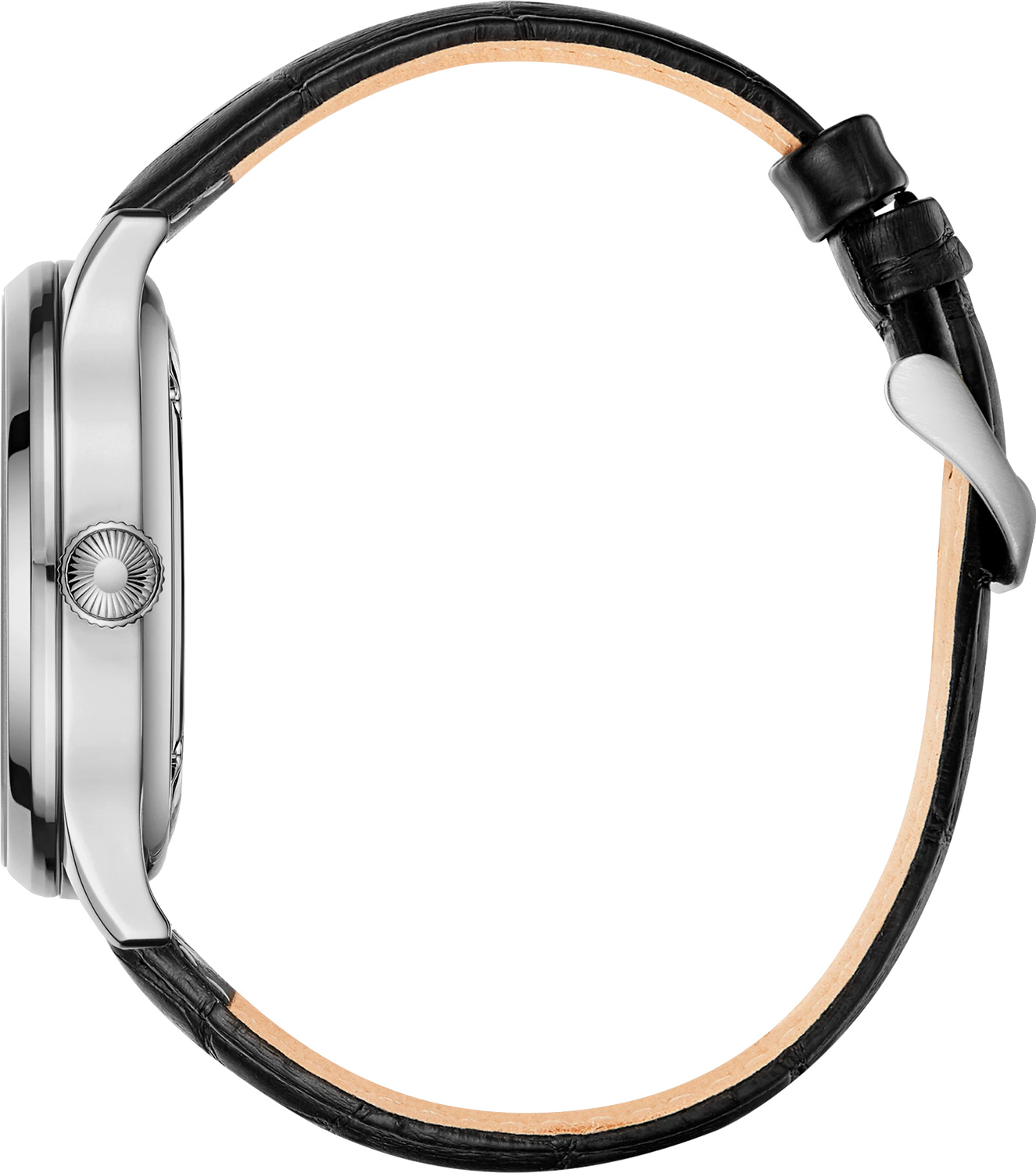 Часы, выполненные в сдержанном классическом стиле, станут отличным дополнением мужского делового костюма или вечернего образа. Мужские механические часы с автоподзаводом Elegance. Стальной круглый корпус с полированной поверхностью. Однотонный эмалевый циферблат защищен прочным сапфировым стеклом. Метки в виде элегантных римских цифр. По краю циферблата нанесена минутная шкала. В механизме 24 камня, частота 28800 полуколебаний в час. Запас хода 42 часа. Функция остановки секундной стрелки. Рифленая заводная головка. Ремешок из натуральной кожи с тиснением под крокодила с классической застежкой.