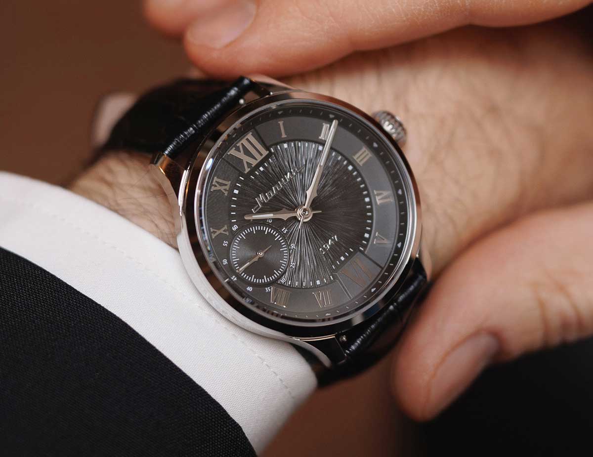 Механические часы Акинак 2.1. Модель вдохновлена историей древнего народа скифов и их наследием. Стрелки на циферблате сделаны в виде легендарного боевого клинка акинака, а узор гильоше выполнен в виде расходящихся лучей.