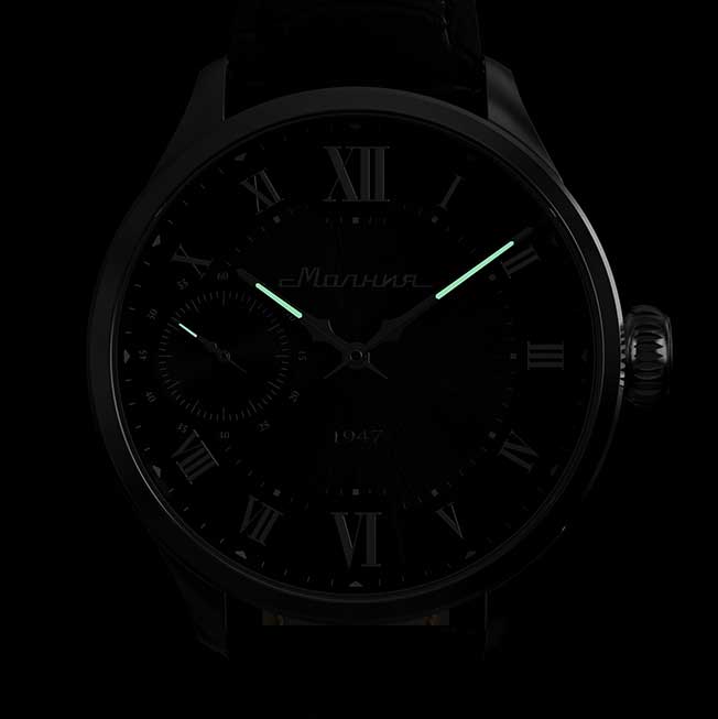 Стрелки с люминесцентным покрытием, которое светится в темноте после непродолжительной зарядки на свету. Прозрачная задняя крышка. Кожаный ремешок с раскладывающейся застежкой и системой быстрой замены.