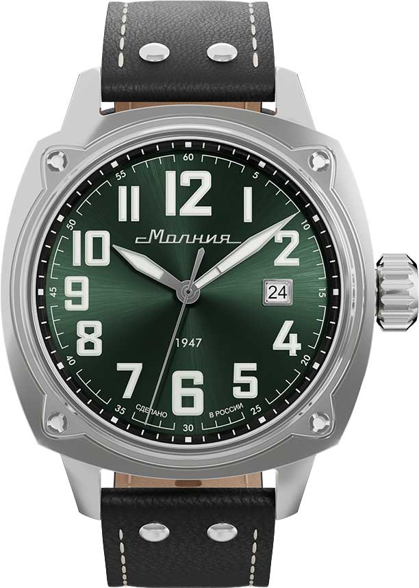 украшен декоративными болтами. Рифленая заводная головка украшена фирменным логотипом. Прозрачная задняя крышка. Кожаный ремешок с классической застежкой украшен белой строчкой.Производитель оставляет за собой право вносить изменения во внешний вид часов. При заказе уточняйте у менеджера выбранный вариант.