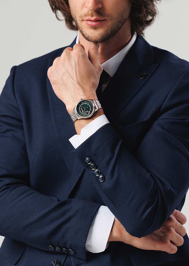 Рифленая заводная головка украшена фирменным логотипом. Завинчивающаяся прозрачная задняя крышка. Стальной браслет с раскладывающейся застежкой и системой быстрой замены. Производитель оставляет за собой право вносить изменения во внешний вид часов. При заказе уточняйте у менеджера выбранный вариант.