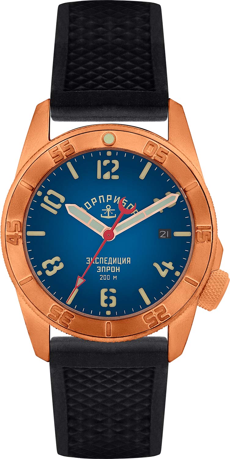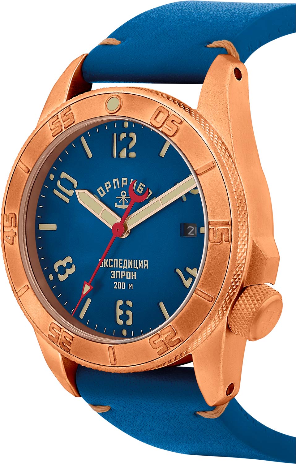 Круглый корпус выполнен из бронзы (CuSn8) и украшен надписью «ЭПРОН» на боковой поверхности. Циферблат с метками в виде штрихов и арабских цифр защищен прочным сапфировым стеклом. Стрелки и метки с люминесцентным покрытием SuperLuminova, которое светится в темноте после непродолжительной зарядки на свету. Окошко даты находится в положении 3 часа.