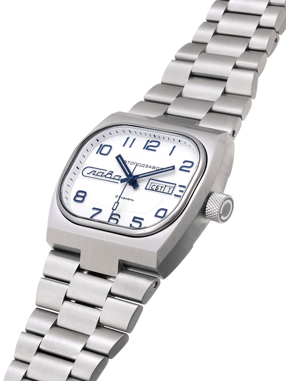 Точный механизм и дизайн, проверенный временем, - идеальный аксессуар на каждый день. Мужские механические часы TV с автоподзаводом. Прямоугольный корпус. В механизме 21 камень, частота 21600 полуколебаний в час. Запас хода 42 часа. Окошко даты и дня недели в положении 3 часа. Браслет с раскладывающейся застежкой.