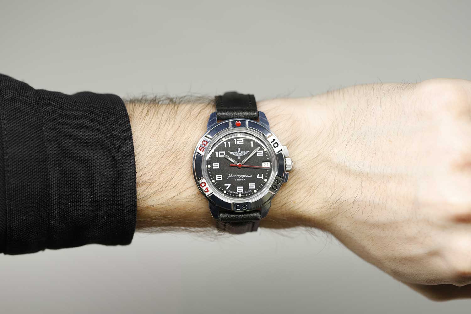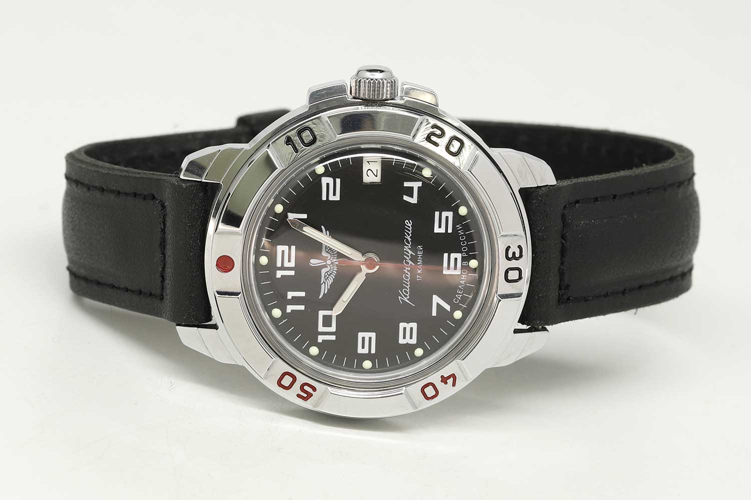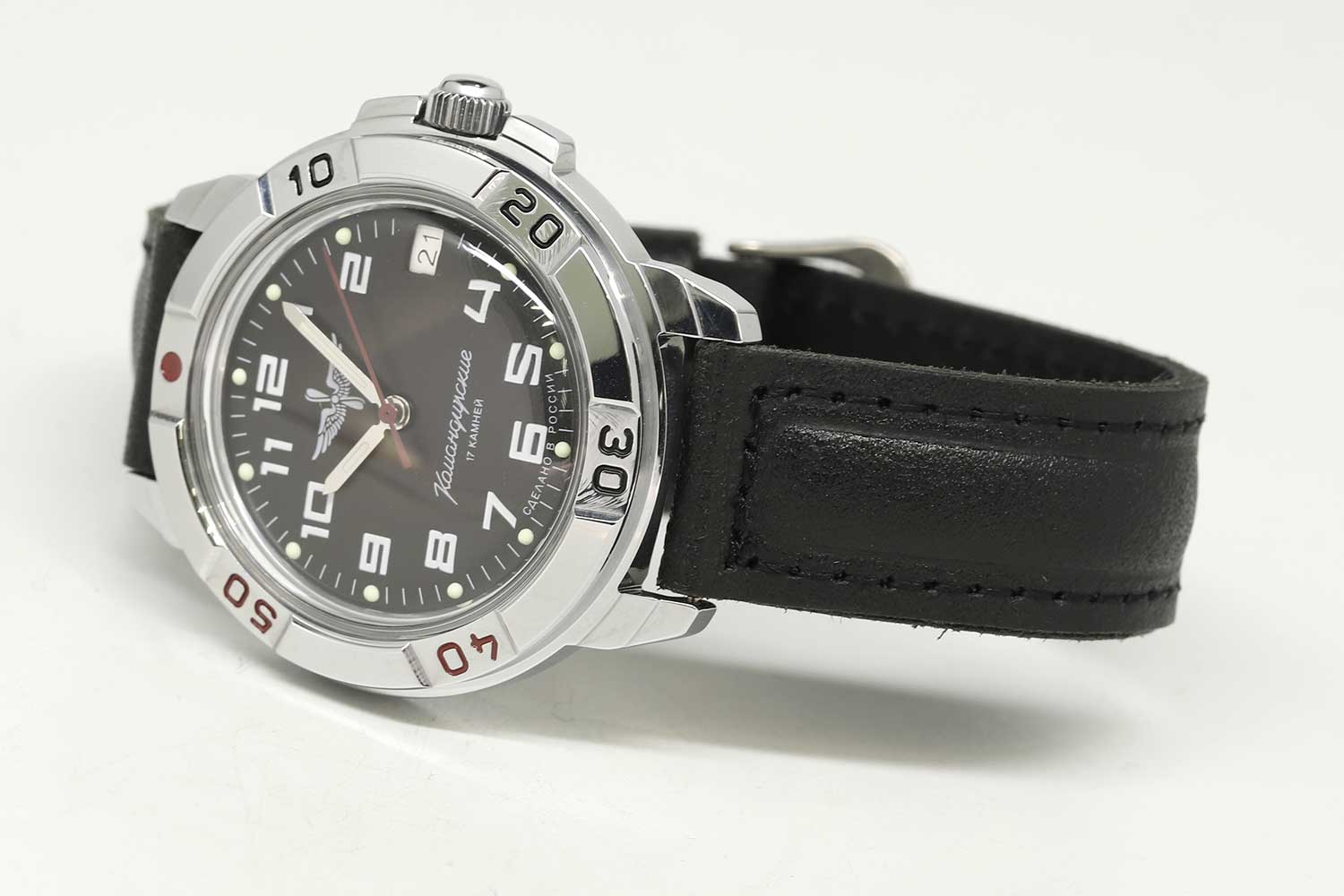 Легендарные российские часы сочетают в себе практичность, точность и суровый мужской стиль. Командирские. Мужские часы. В механизме 17 камней. Запас хода 36 часов. Противоударное устройство оси баланса. Метки в виде арабских цифр. Окошко даты. Заводная головка с защитой. Стальная задняя крышка. Ремешок с классической застежкой. Производитель оставляет за собой право вносить изменения во внешний вид часов.