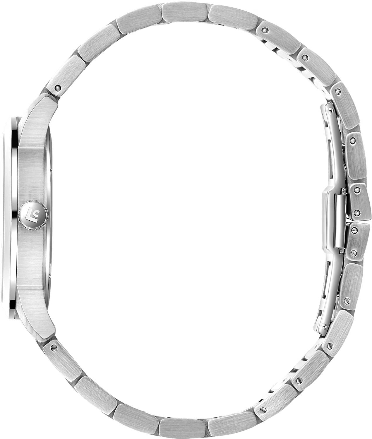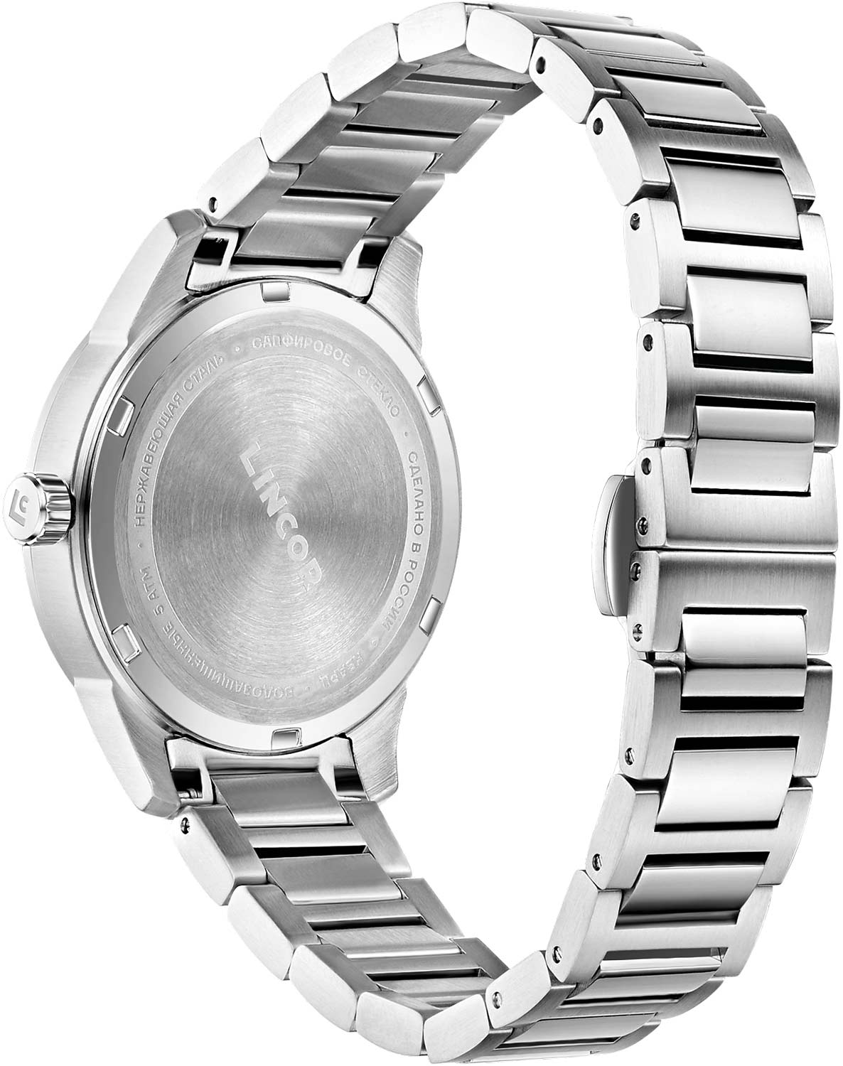 Окошко даты находится в положении 3 часа. Рифленая заводная головка. Завинчивающаяся задняя крышка. Браслет с раскладывающейся застежкой.
