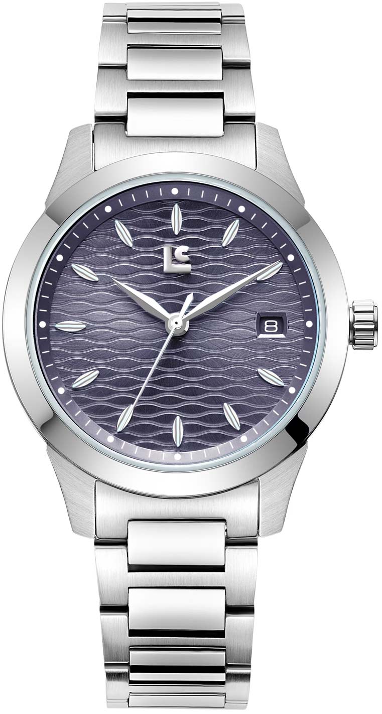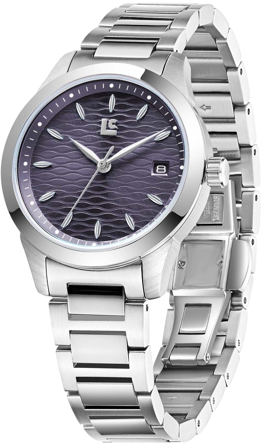 Женские наручные часы. Круглый стальной корпус с сатинированной поверхностью и глянцевым безелем. Циферблат выполнен по технологии Sunray (солнечные лучи) и украшен волнообразным рисунком. Метки в виде штрихов с люминесцентным покрытием, которое светится в темноте после непродолжительной зарядки на свету.