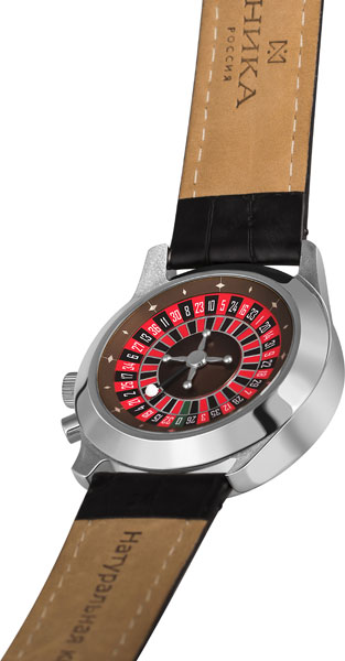 Элегантные часы из серии ''Казино'', выполненные в лучших традициях современной классики, помогут принять правильное решение. Время пофлиртовать с удачей. Казино. Лимитированная серия. Задняя крышка с минеральным стеклом, под которым находится рулетка - 36 ячеек красного и черного цветов, зеленый нулевой слот и судьбоносный шарик. Чтобы запустить рулетку, нажмите на дополнительную кнопку под заводной головкой. Производитель оставляет за собой право вносить изменения во внешний вид часов.