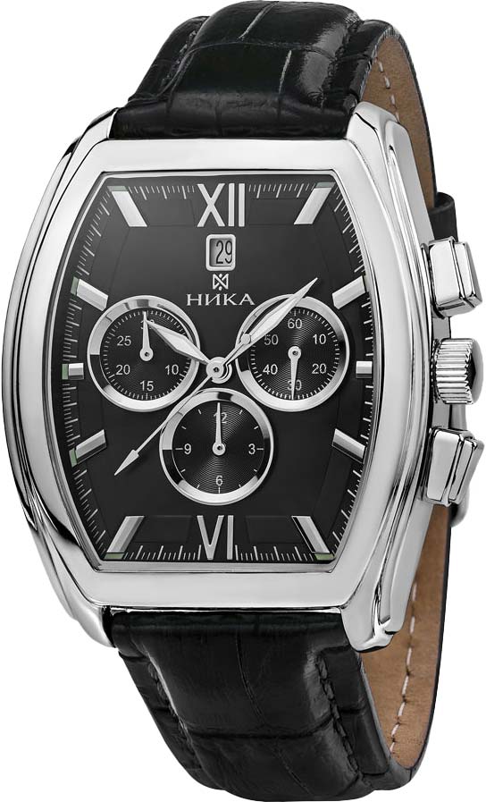 Хронограф от компании Ника - идеальное сочетание роскошности, функциональности и безупречного дизайна. Celebrity. Часы-хронограф с секундомером. Метки в виде штрихов и двух римских цифр. Окошко даты находится в положении 12 часов. Кожаный ремешок с классической застежкой. Производитель оставляет за собой право вносить изменения во внешний вид часов.