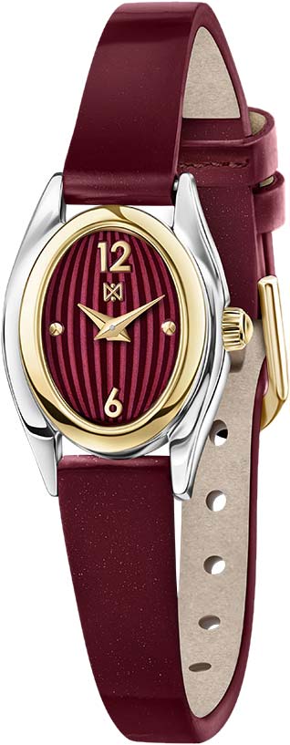 Аккуратный женский аксессуар подарит вам незабываемые эмоции. Наручные часы с овальным корпусом из серебра. Безель выполнен из желтого золота 585 пробы. Циферблат украшен гравировкой «венецианская полоска». Метки в виде точек и арабских цифр 6 и 12. Рифленая заводная головка. Лакированный кожаный ремешок с классической застежкой. Производитель оставляет за собой право вносить изменения во внешний вид часов.