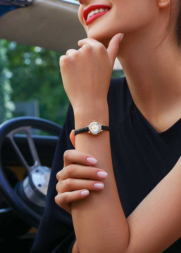 Ультратонкие женские часы Viva в круглом золотом корпусе. Циферблат с метками в виде точек и римских цифр защищает прочное минеральное стекло с сапфировым напылением. Ремешок с классической застежкой. Производитель оставляет за собой право вносить изменения во внешний вид часов.