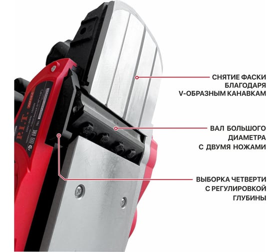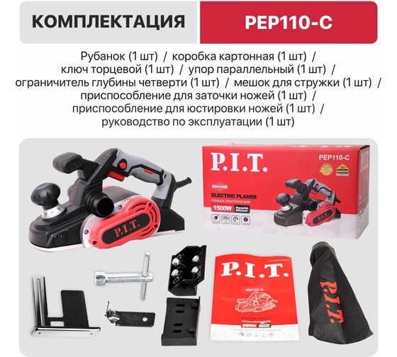 Рубанок электрический P.I.T. 1500Вт, 15000об/мин, 2 ножа 110мм, 0-3,5мм, четв. 15мм, 3 фаски PEP110-C
