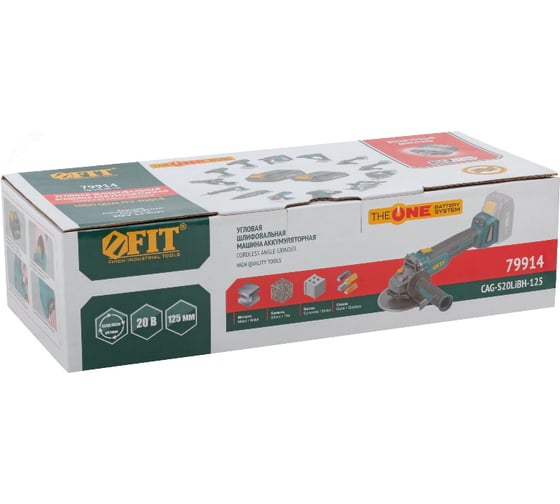 Шлифмашина угловая аккумуляторная FIT 20 В, 3500/8500 об/мин, КлК 125 мм, 1,7 кг, 2 частоты вращения, бесщеточный, без АКБ, коробка 79914