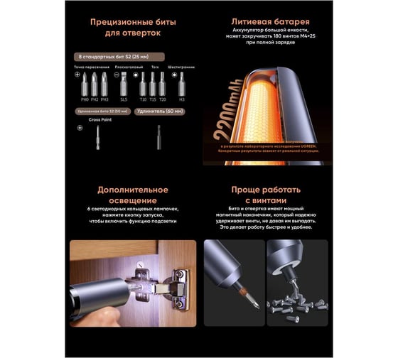Шуруповерт с набором бит Ugreen UT118 Electric Screwdriver Set серый 15712_