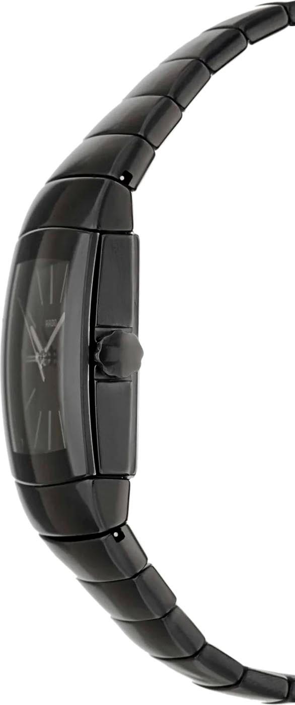 Высококачественные швейцарские мужские часы. Прямоугольный керамический корпус. Матовый циферблат с накладными метками в виде штрихов. Прямоугольные стрелки в стиле Baton. Окошко даты находится в положении 3 часа. Рифленая заводная головка. Надежный керамический браслет с раскладывающейся застежкой.