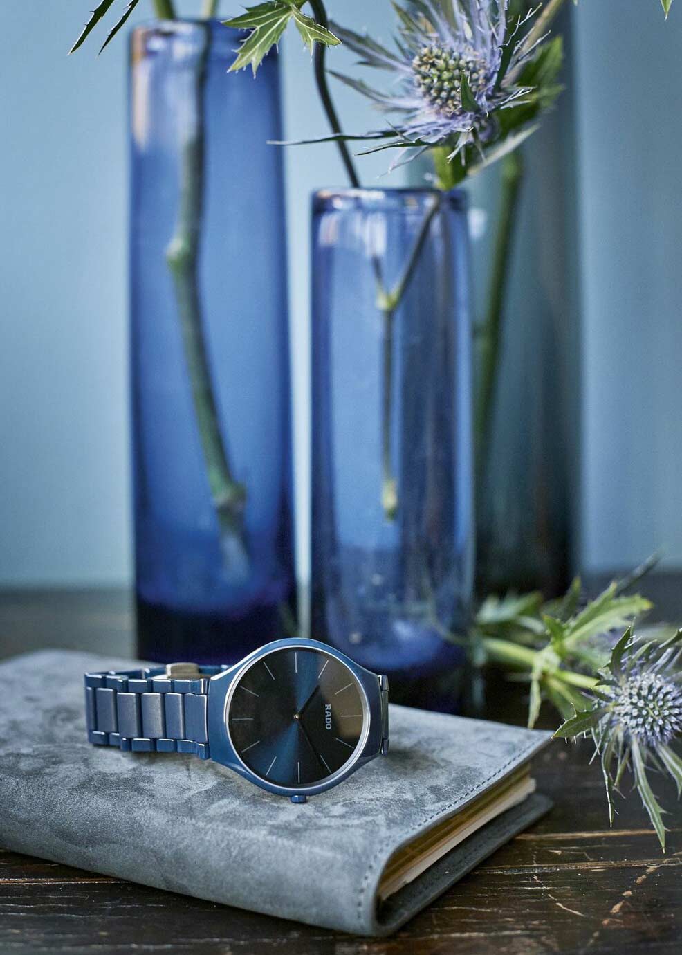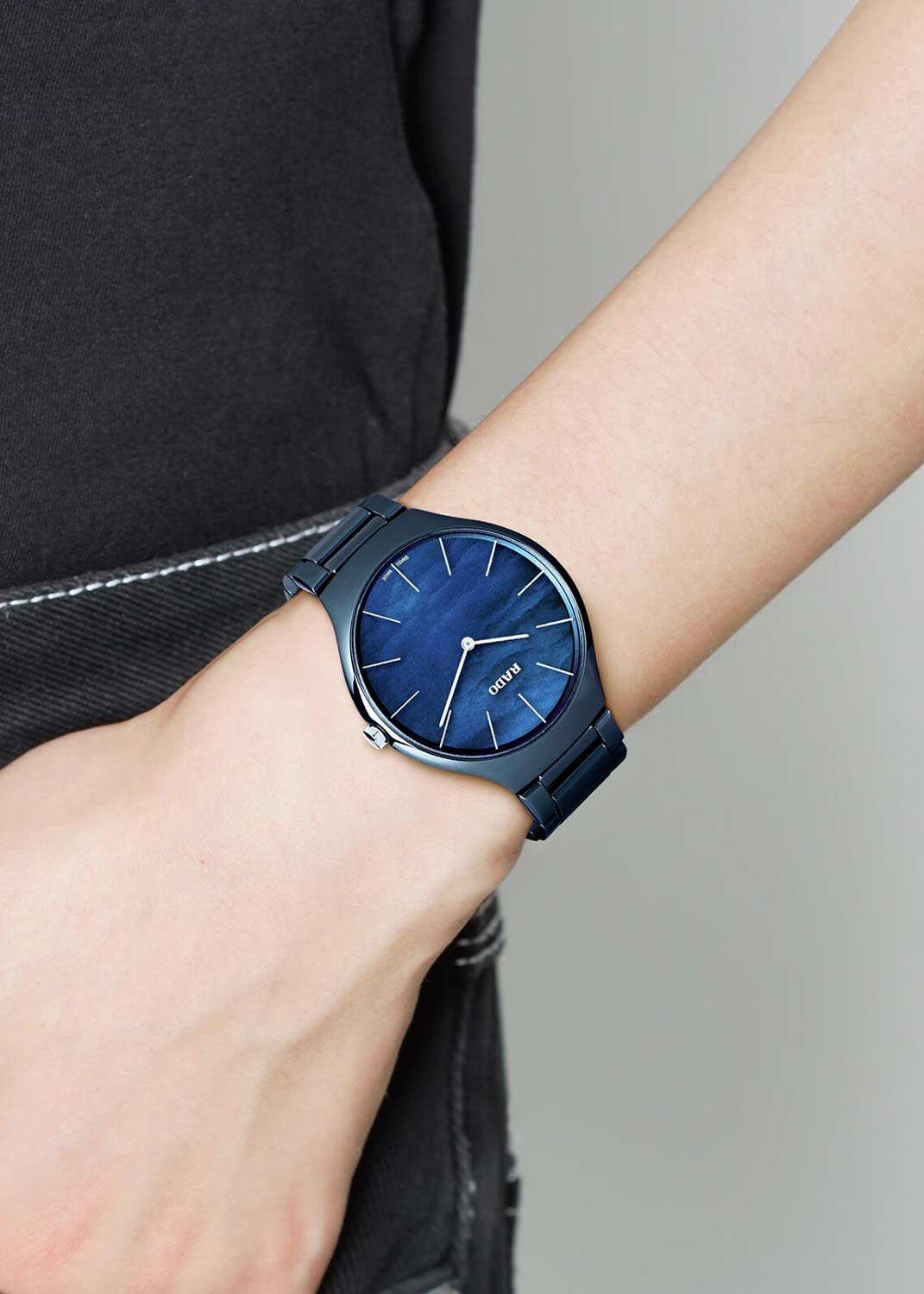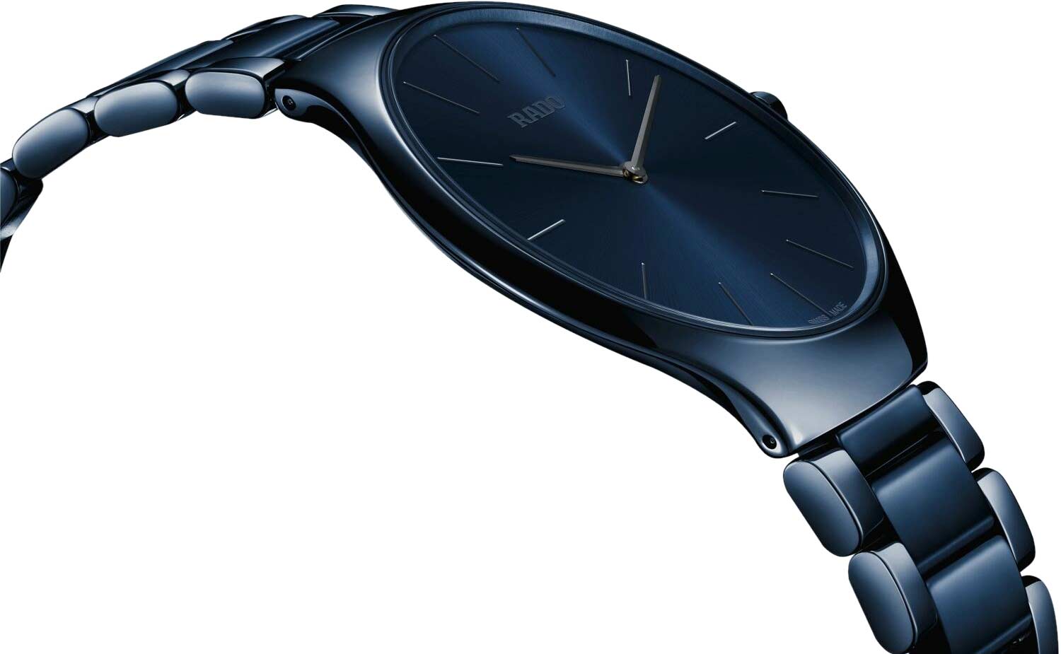 Мужские наручные часы True Thinline. Круглый керамический корпус. Циферблат выполнен по технологии Sunray (солнечные лучи). Метки в виде штрихов. Гладкая заводная головка. Надежный керамический браслет с раскладывающейся застежкой.