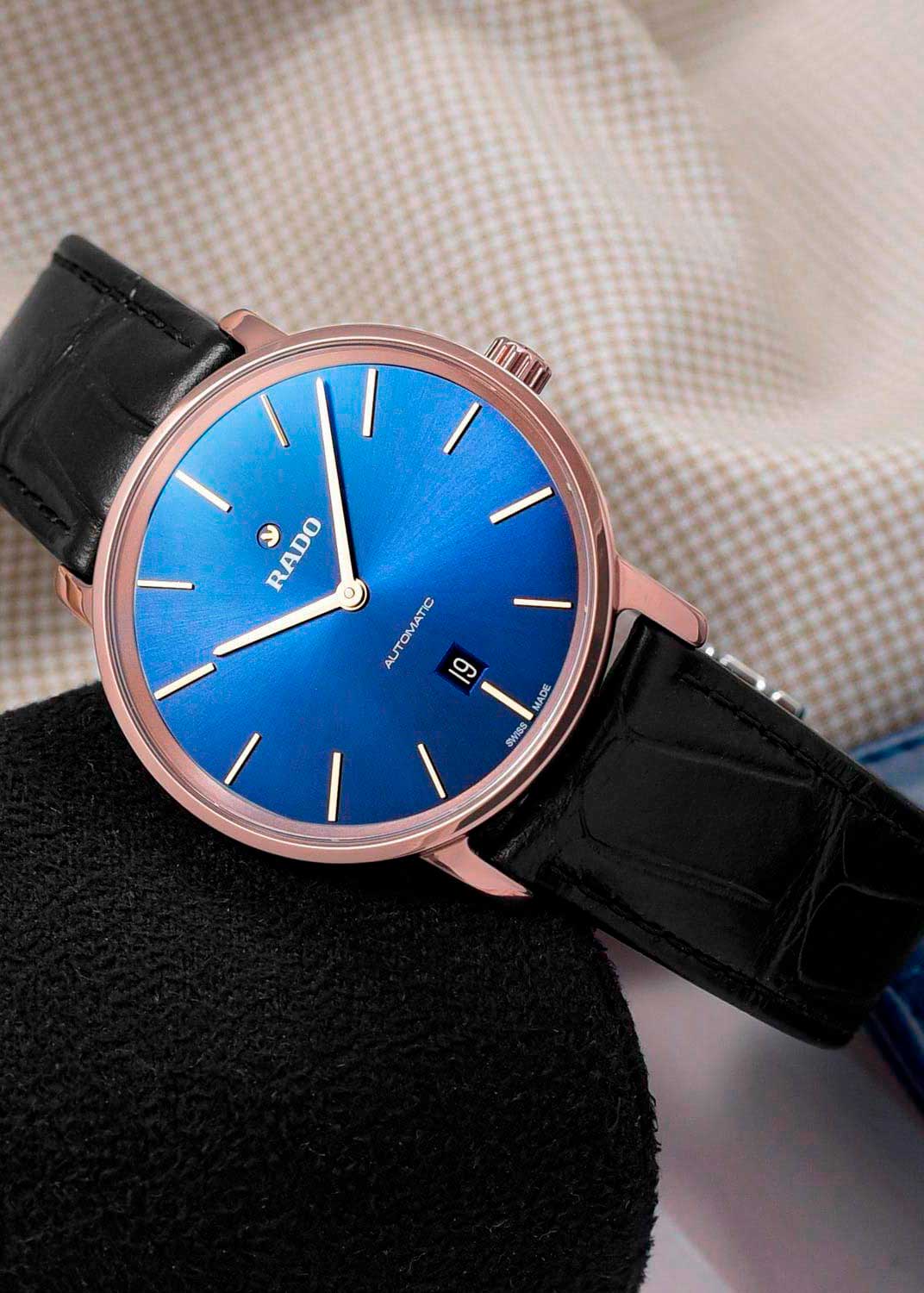 Швейцарские автоматические мужские часы DiaMaster Thinline Automatic. В механизме 21 камень. Запас хода 64 часа. Круглый керамический корпус. Циферблат выполнен по технологии Sunray (солнечные лучи). Накладные метки в виде штрихов.