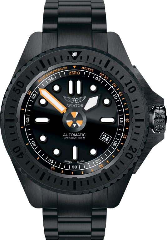 Мужские автоматические часы Xpro Dive 300 Automatic. В механизме 26 камней, частота 28800 полуколебаний в час. Запас хода до 38 часов. Эргономичный круглый стальной корпус с матовой отделкой. Керамический безель с метками, покрытыми составом LumiNova.