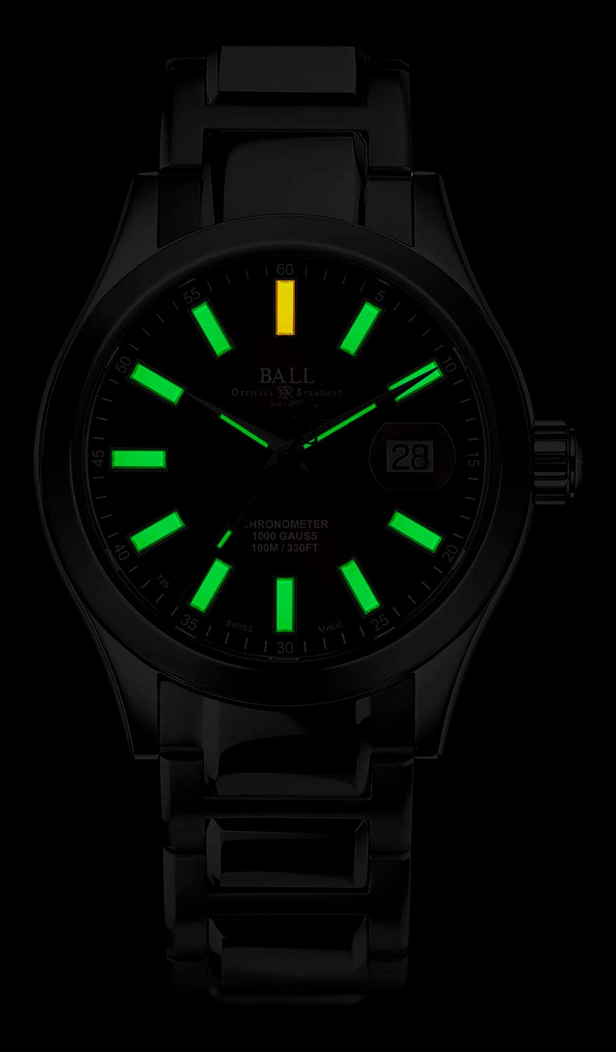Стильные и надежные часы со спортивным характером по достоинству оценят динамичные современные мужчины. Мужской наручный хронометр Engineer III Marvelight Chronometer сертифицирован C.O.S.C. Частота 28800 полуколебаний в час. Запас хода 38 часов. Противоударное устройство оси баланса - 5000Gs. Защищены от магнитных полей экраном из мю-металла до 80000A/m. Циферблат с метками в виде штрихов выполнен по технологии Sunray (солнечные лучи). Окошко даты с увеличительным стеклом находится в положении 3 часа. 14 газовых микротрубок на стрелках и метках позволяют видеть время даже в полной темноте. Завинчивающаяся рифленая заводная головка. Браслет с раскладывающейся застежкой.