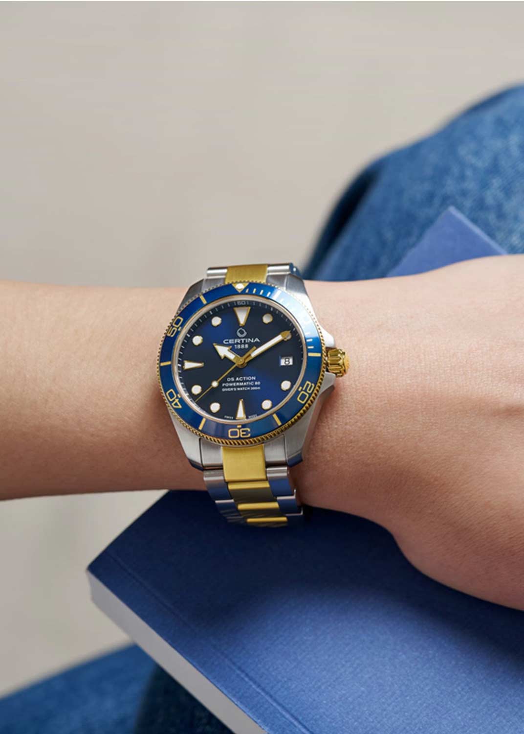 Спортивные наручные часы унисекс DS Action Diver Powermatic. Запас хода 80 часов. Круглый стальной корпус. Рифленый стальной безель с алюминиевой вставкой. Циферблат выполнен по технологии Sunray (солнечные лучи). Накладные метки в виде штрихов и точек. Мечевидные стрелки в стиле Sword.