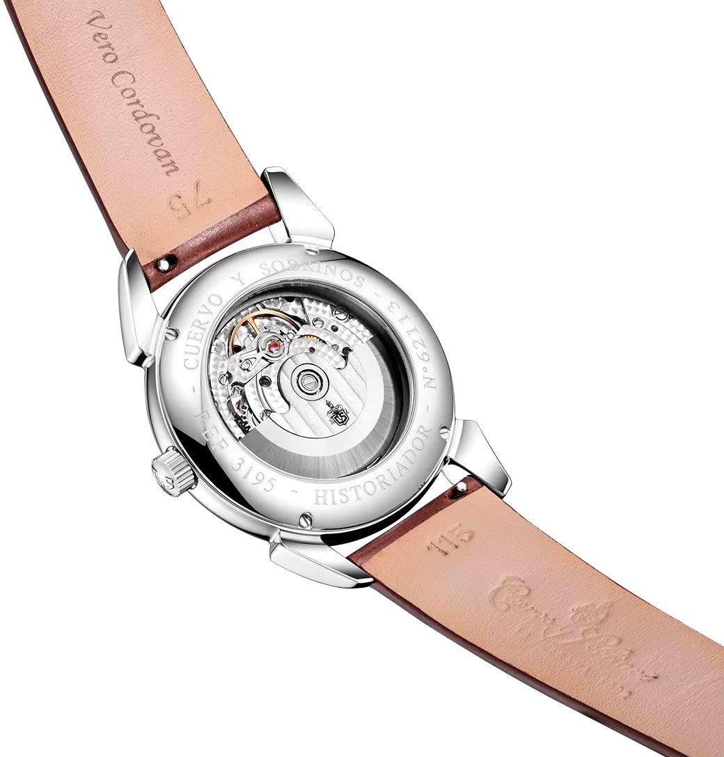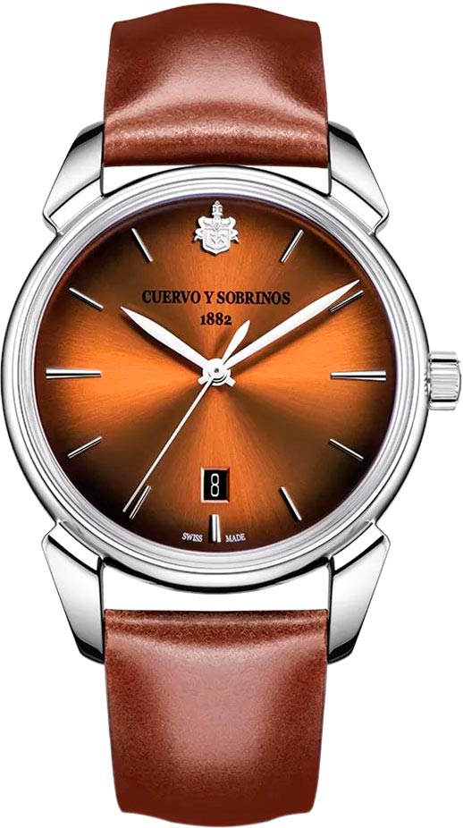 Стильный аксессуар с классическими чертами станет отличным завершением безупречного образа. Мужские наручные часы Historiador Asturias. Модель посвящена провинции Астурия (Испания) - месту рождения семьи Куэрво, которая основала компанию после переселения на Карибский остров. Отважные астурийцы, которые в 19 веке отправились в Америку открыть для себя новый мир и улучшить свою жизнь, обогатили кубинское общество и помогли сделать его таким, каким оно есть на сегодняшний день. В механизме 28 камней, частота 28800 полуколебаний в час. Запас хода 38 часов. Табачный циферблат выполнен по технологии Sunray (солнечные лучи). Накладные метки в виде штрихов. Отметка 12 выполнена в виде накладной эмблемы «CyS». Окошко даты находится в положении 6 часов. Круглый полированный стальной корпус. Прозрачная задняя крышка с сапфировым стеклом. Ремешок из натуральной кожи с раскладывающейся застежкой, украшенной эмблемой бренда «CyS». Система быстрой замены ремешка. В подарок фирменный хьюмидор - традиционный кубинский футляр для сигар из дорогих пород дерева.