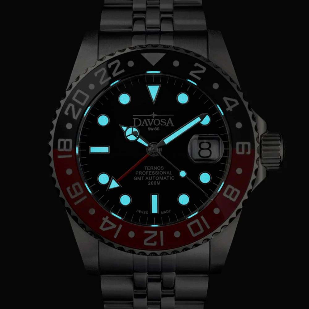Эти швейцарские часы с характерным спортивным дизайном, надежным и точным механизмом - настоящий профессионал, который без особых усилий сопроводит любого дайвера на глубину и станет ему отличным компаньоном в его наземных приключениях. Мужские механические часы с автоподзаводом Ternos Professional GMT Diver. Круглый стальной корпус. Керамический безель вращается в одном направлении. Циферблат защищен устойчивым к царапинам сапфировым стеклом с антибликовым покрытием. Окошко даты с увеличительным стеклом находится в положении 3 часа. Второй часовой пояс в 24-х часовом формате времени, отображается центральной стрелкой. Стрелки часов и метки в виде штрихов и точек с люминесцентным покрытием SuperLumiNova BGW9, которое эффектно светится в темноте. Функция остановки секундной стрелки. Завинчивающаяся рифленая заводная головка с защитой. Завинчивающаяся задняя крышка. Надежный стальной браслет с раскладывающейся застежкой.