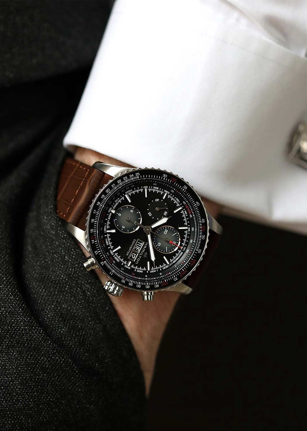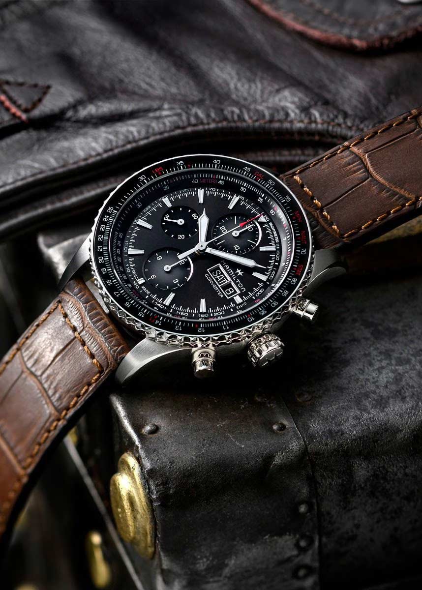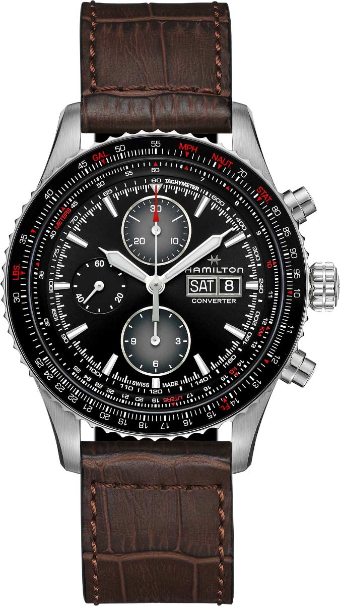 Мужские пилотские часы-хронограф с секундомером и тахиметром Converter Auto Chrono. Эксклюзивный калибр H-21-Si. Запас хода 60 часов. Перевод в различные единицы измерения: футы в метры, мили в километры, конвертация валют. Антимагнитная кремниевая спираль.