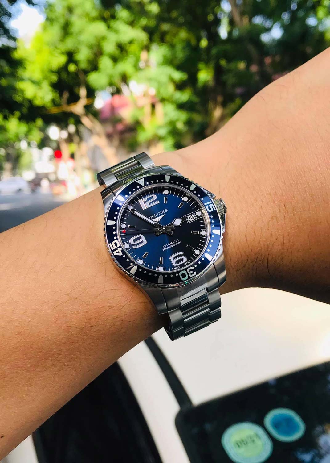 Унисекс. Наручные часы с круглым стальным корпусом. Эксклюзивный механизм Longines с частотой 25200 полуколебаний в час. Запас хода примерно 72 часа. Безель с керамической вставкой вращается в одном направлении. Циферблат выполнен по технологии Sunray (солнечные лучи) и защищен прочным сапфировым стеклом. Накладные метки в виде штрихов, точек и арабских цифр.