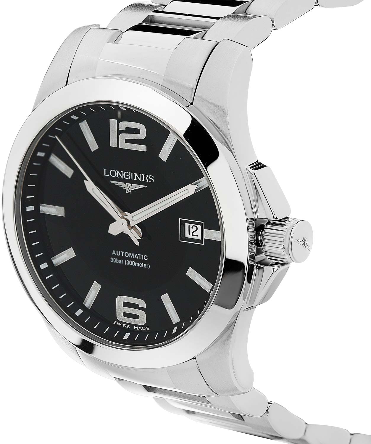 Классические черты в сочетании с большой водозащитой делают из этого аксессуара лучший вариант часов для практичного мужчины. Часы с круглым стальным корпусом. Эксклюзивный механизм Longines с частотой 25200 полуколебаний в час. Запас хода примерно 72 часа. Лакированный циферблат защищен прочным сапфировым стеклом. Накладные метки в виде штрихов и двух арабских цифр. Окошко даты находится в положении 3 часа. Завинчивающаяся заводная головка с защитой. Завинчивающаяся задняя крышка украшена объёмным логотипом компании Longines. Браслет с тройной раскладывающейся застежкой. Застежка с системой блокировки. Внешний вид упаковки может отличаться от представленной на фото. Уточняйте при заказе.